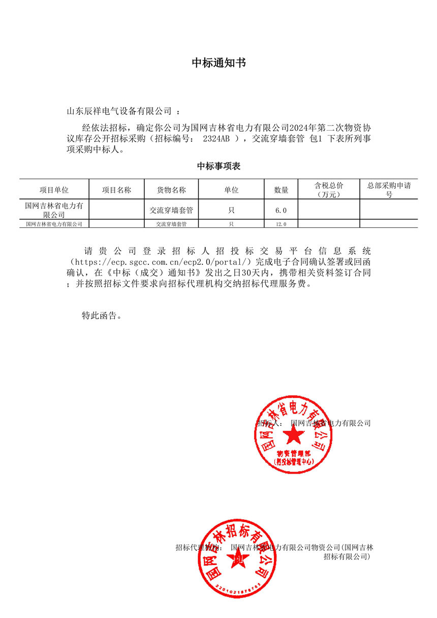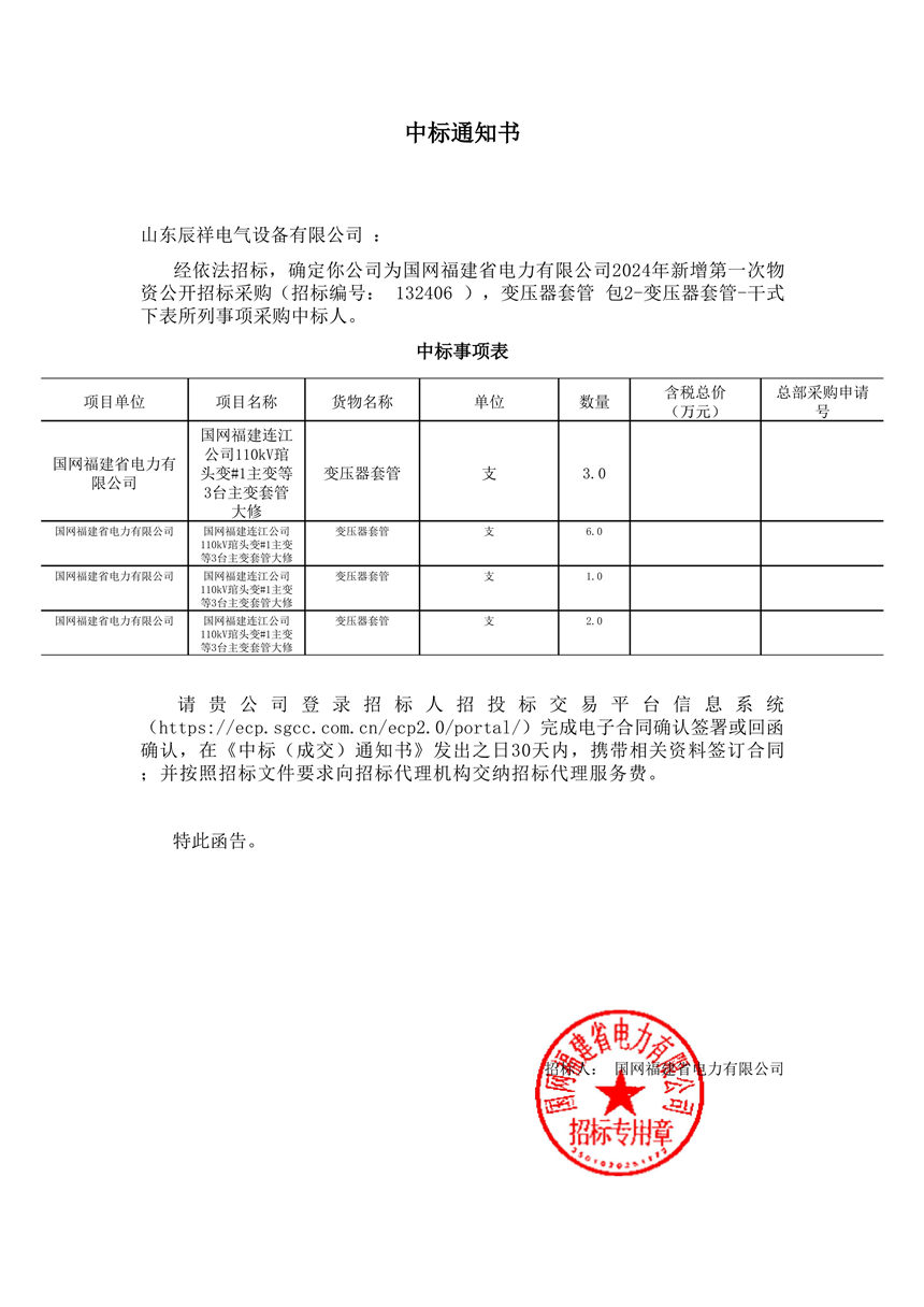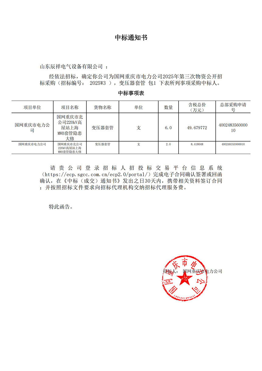 2025.02.14 110kV瓷絕緣穿墻套管中標通知書